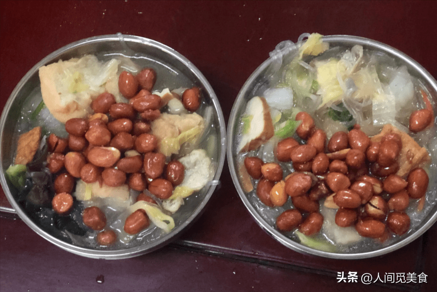 秦正本以为是一人二十元,在南京他也经常陪外婆去吃斋面,一份斋面也要二十元,但没想到居然是一人十元,两个人二十元,秦正确认了三遍都不敢相信。给了钱之后,就给秦正四个碗,一个碗装饭一个碗装菜,米饭有白米饭和白粥,舀饭的勺子比较大,一勺下来就是一碗米饭,偏软吃起来有淡淡的米香味,再舀一勺就是一碗菜,有点像大炖菜,里面有豆泡粉丝木耳豆干娃娃菜等等,还有油酥花生米大颗而饱满,吃完还可以再续,前提就是不能浪费。
