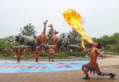 4月22日,为期一个月的济南野生动物世界第四届国际马戏嘉年华“长颈鹿托马斯的奇幻旅行”狂欢热闹开启,为游客奉上一道视觉盛宴。本届嘉年华聚集了来自全球多个国家和地区的50余位马戏演员同台献艺,同时在每个周末还将献上精彩纷呈的动物奇趣大巡游,将动物元素、杂技元素以及演艺元素全面融合,给游人带来无限惊喜与欢乐。据悉,即日起至4月26日,景区限量推出99元马戏狂欢畅享票,另赠送马戏、安全体验馆二选一,整个马戏嘉年华期间均可使用,包含“五一”假期!在这春暖花开的季节,来济野搭上这趟“春日野趣列车”,尽情享受与众不同的旅行吧!(本报记者吕传泉通讯员王必聪摄)