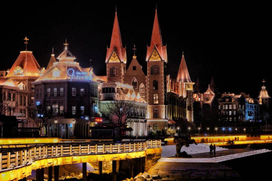 在烟台市区的海边,有一片欧式建筑,尖尖屋顶与蓝天白云融为一体,满满的异域风情。这就是海昌渔人码头,在这里拍照,一秒穿越到欧洲!