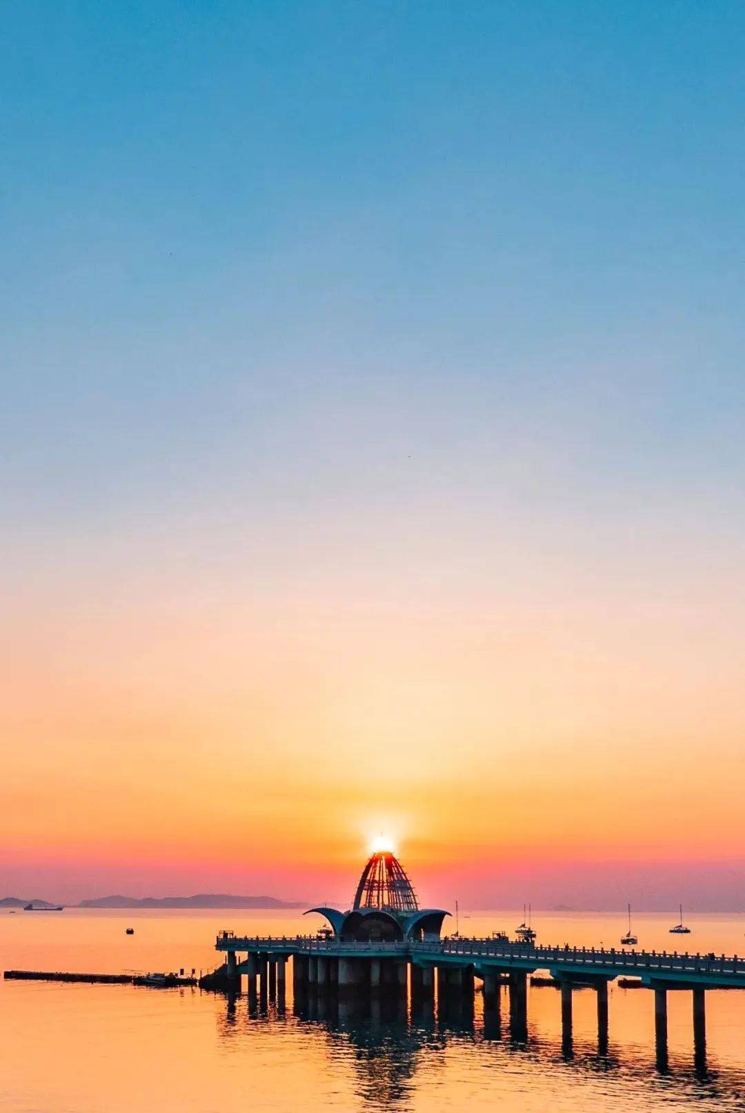 烟台漂亮的海上栈桥,美轮美奂,让人叹为观止。烟台海边已建有五座不同式样的栈桥,一座比一座漂亮,为国内之最。