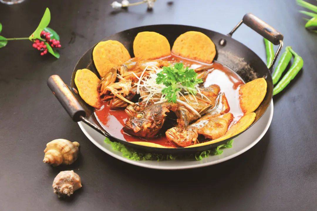 鱼锅片片是胶东地区的一道特色传统名菜。将新鲜捕捞上岸的各种鱼混杂在锅里炖,大铁锅内壁上还贴着玉米片片,片片浸满汤汁,味道鲜美无比。