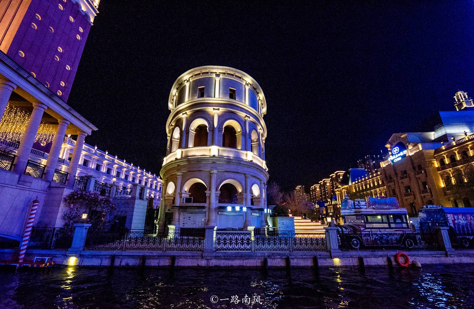 致的欧式建筑,水声浆影的小河,悠扬悦耳的音乐,让这个奇妙之夜充满魅力,此时人在大连,却有种身在威尼斯的感觉,这说明中华文化具有强大的包容性。