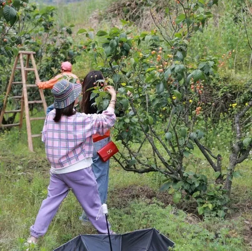 开摘仪式后,舌尖狂欢季正式开始。游客们或走进樱桃集市,品尝乡村美食,或信步漫游在田间小道上、樱桃果园中,听果农讲述樱桃知识,体验采摘乐趣、品尝红果甘味,尽情享受欢乐的春日时光。