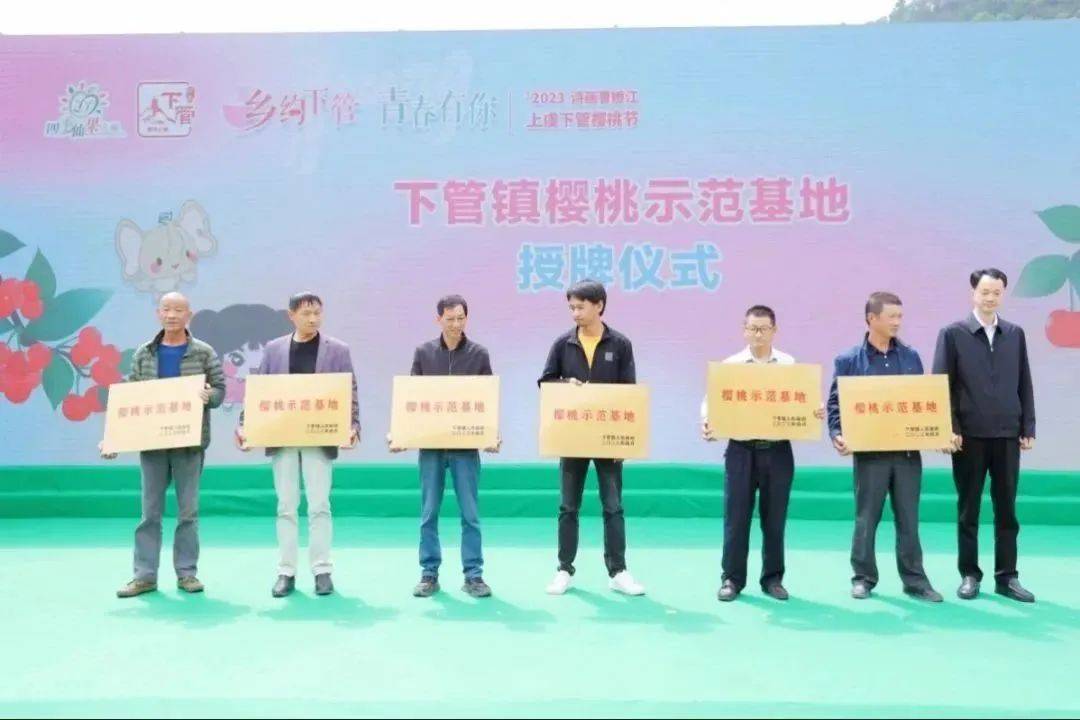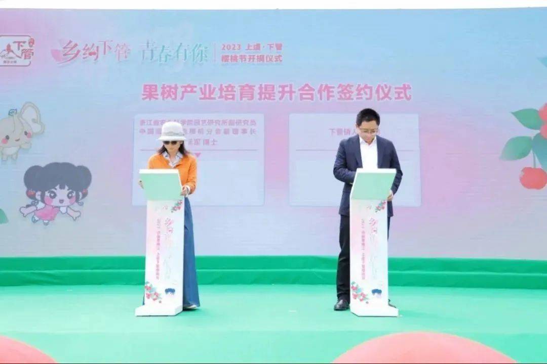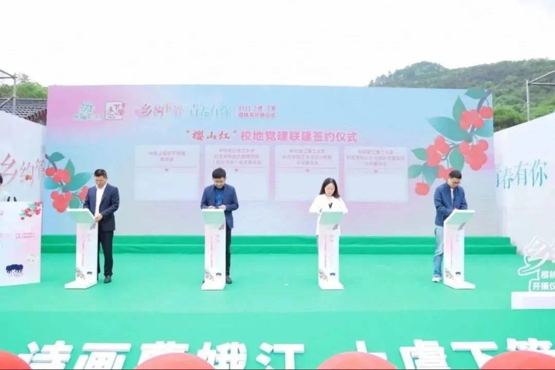 “樱山红”校地党建联建签约仪式、“樱桃认购 爱心助农”主题活动发布仪式、果树产业培育提升合作签约仪式、下管镇樱桃示范基地授牌仪式……一项项议程不断推高现场氛围,点亮了“乡约管溪 青春有你”的活动主题,汇聚高校、企业、农科院、基地等多方力量,为下管发展增添“青”动力。