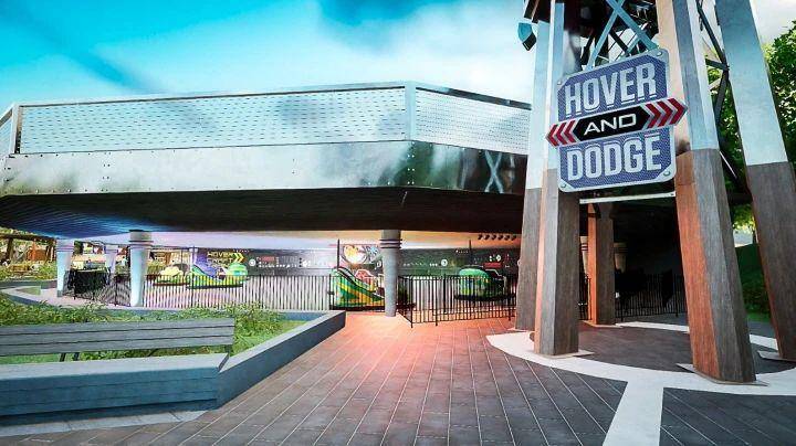 悬停和躲避:Majestic Manufacturing 碰碰车,现在更名为气垫船,以更好地适应该地区的新主题。身高限制:42 英寸,或 48 英寸单独骑行。