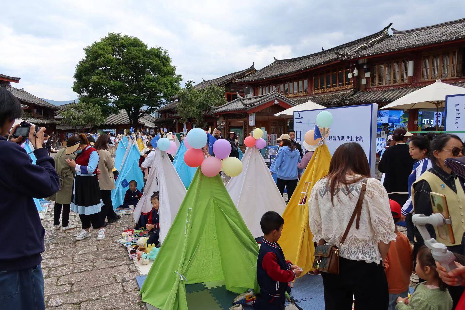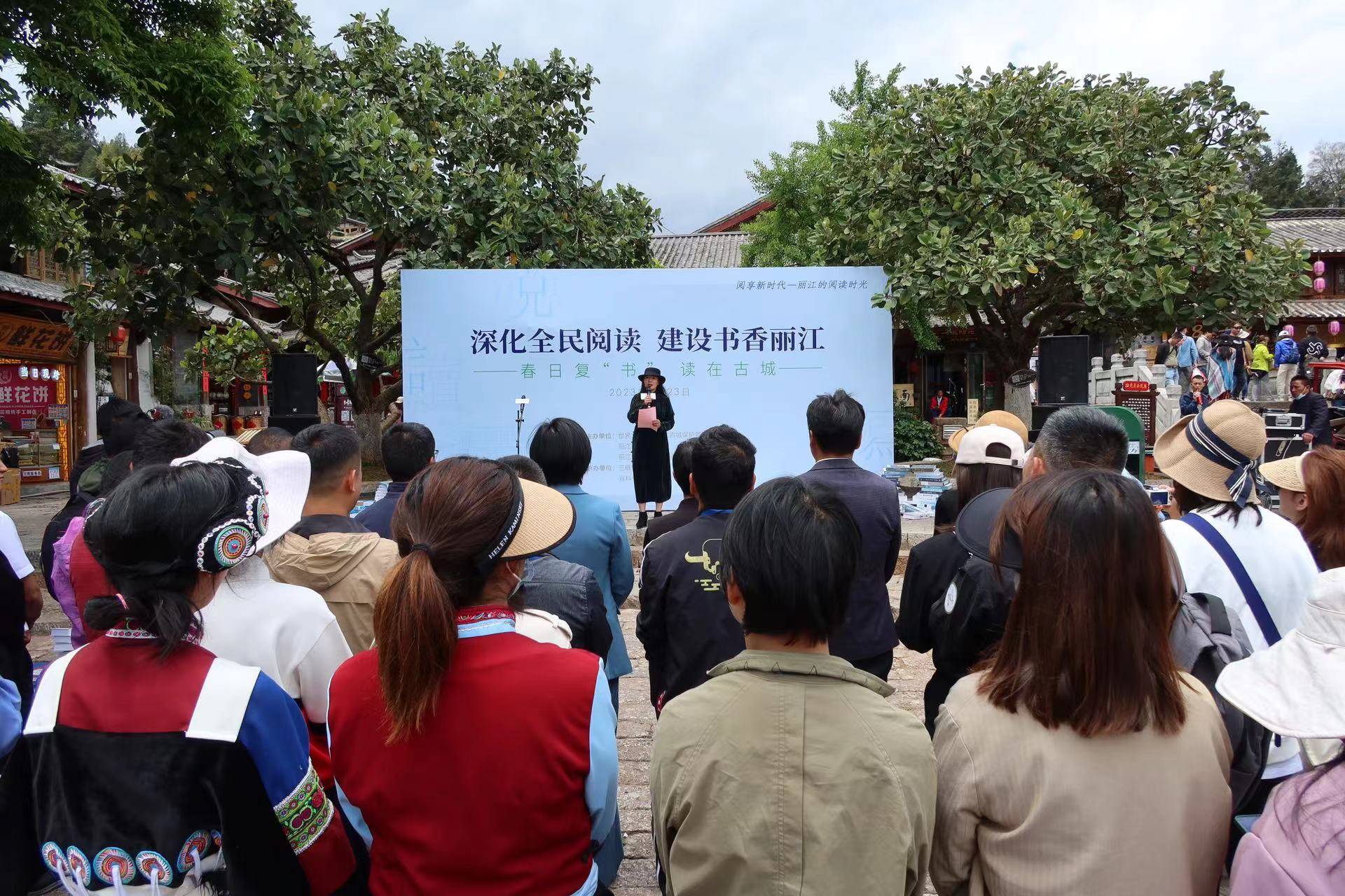 中午1点,“书香丽江·全民阅读”丽江古城系列活动启动仪式在四方街举行。