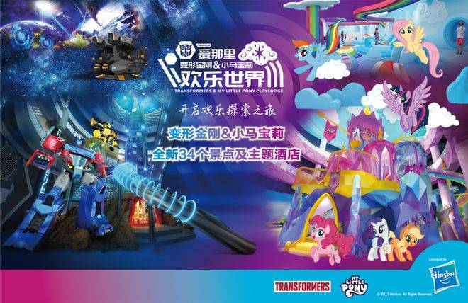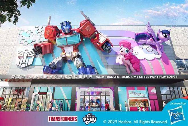 由爱那里娱乐集团与全球品牌娱乐公司孩之宝合作开发的爱那里·变形金刚与小马宝莉欢乐世界,近20,000平方米的三层超大玩乐空间布局,两大IP故事线贯穿了34个主题场景空间、21个游乐互动项目和10大王牌体验。