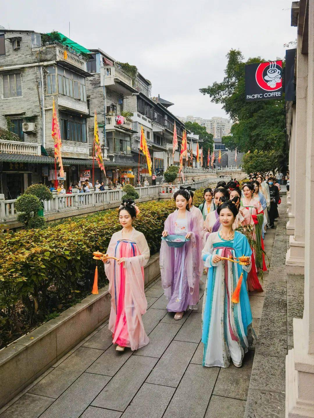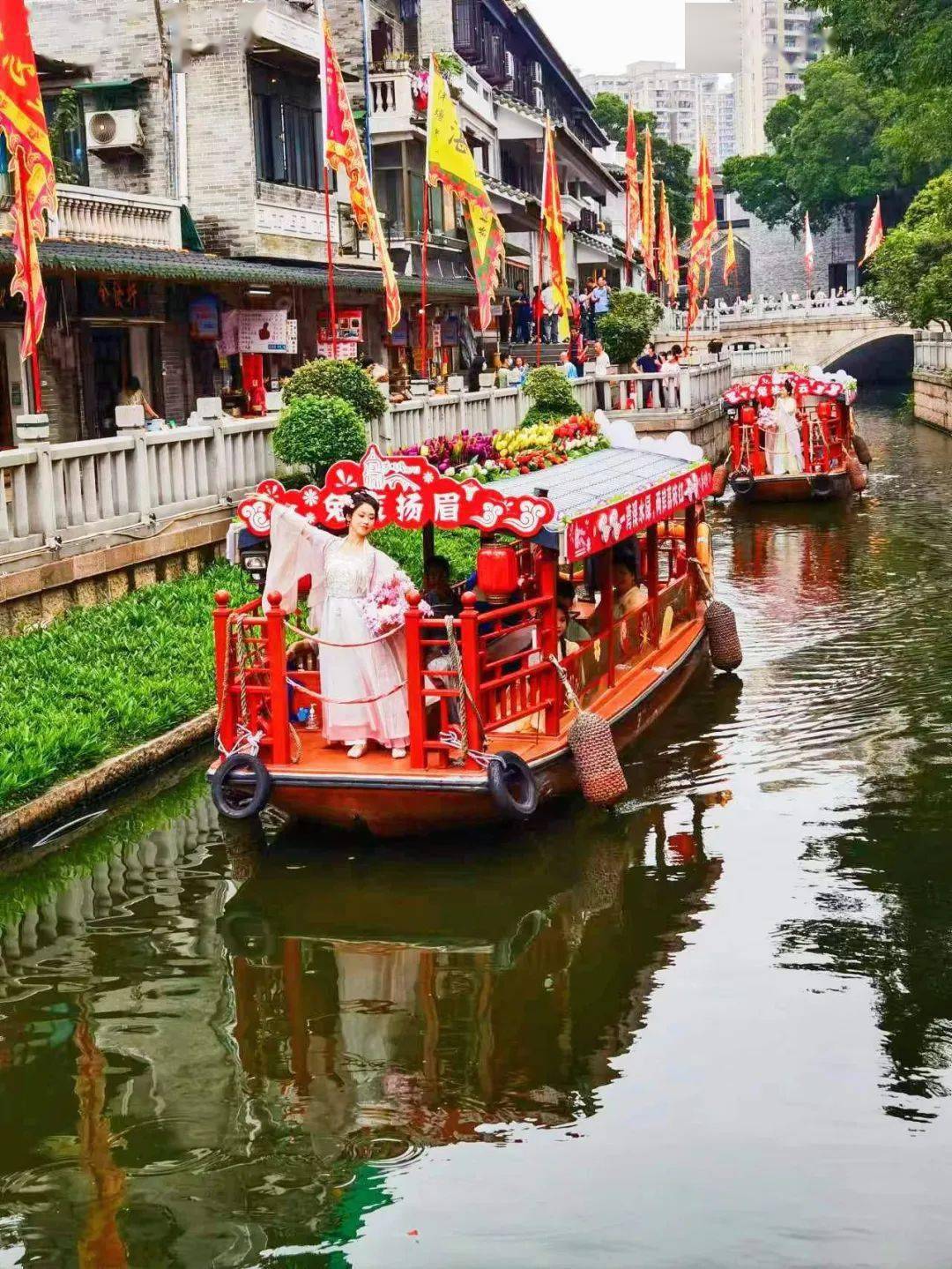农历三月的荔湾湖公园满目青翠,生机盎然,身穿中国传统服饰的小姐姐们结伴在荔湾湖公园游园踏青,向来往行人赠送鲜花香草,呈现古时祓禊场景,那一刻有了温故知新的欢喜:在这个春日,有清风拂面,愿你我在这个时节,有良人知心。不负时光,不负卿;不负春光,不负己。