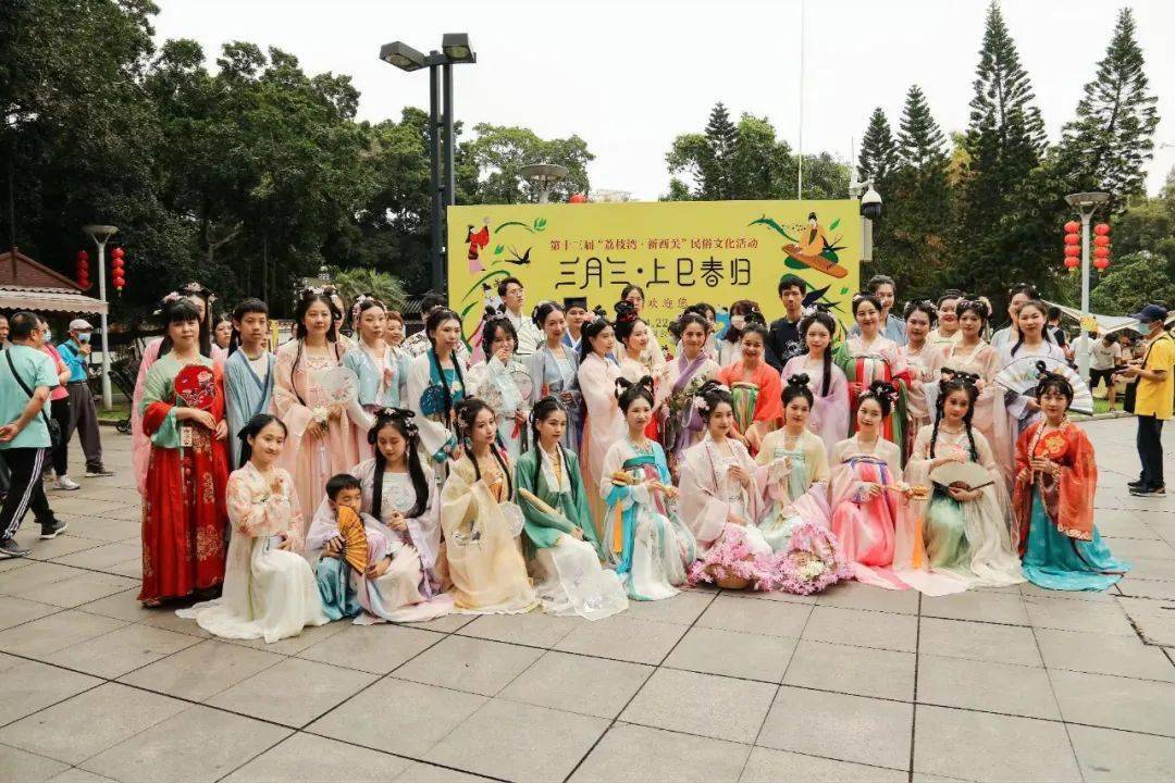为了更好传承弘扬岭南文化,擦亮”荔枝湾·新西关”传统民俗文化活动品牌,让传统文化与当代生活链接,深化文旅融合发展, 2023年4月22日(农历三月初三),由广州市文化广电旅游局、中共广州市荔湾区委宣传部、广州市荔湾区文化广电旅游体育局指导,广州市荔湾区文化旅游融合发展中心主办的 广州市荔湾区第十三届”荔枝湾·新西关”民俗文化活动之”三月三·上巳春归暨广州欢迎您”在荔湾湖公园举行。