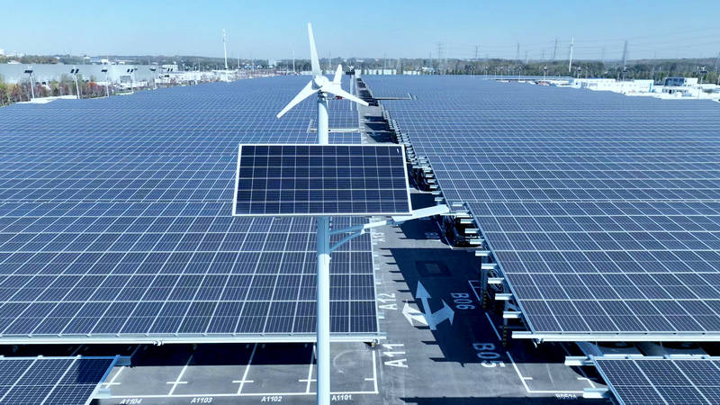 除此以外,园区内高达29万平方米面积的太阳能电池板,这些太阳能电池板大量铺设在停车场上方,既能保护新鲜出炉的新车免受日晒雨淋,又能带来可持续的清洁能源。