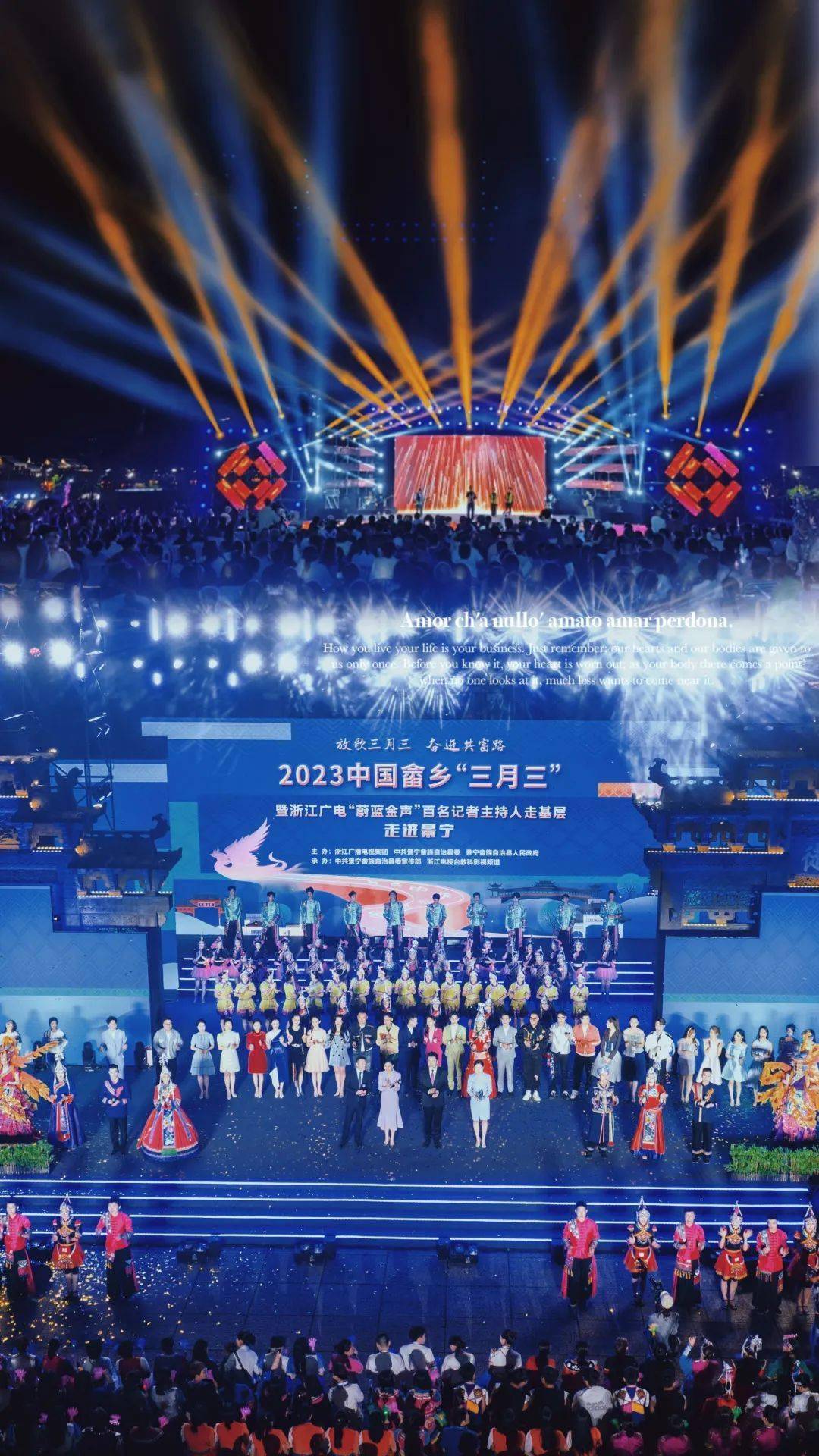 中国畲乡三月三开幕式文艺晚会,慕名而来的各地旅游团及周边城市的游客齐聚一堂,来自浙江广播电视集团的记者、主持人们和畲乡儿女共同呈现了一场充满畲族风情的文化盛宴。