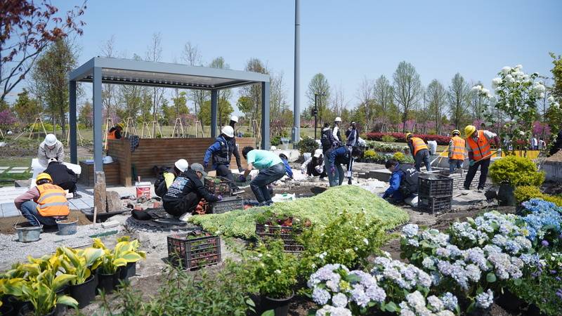 芳菲四月春意浓。2023年上海(国际)花展规模最大的分会场——以“花开南上海”为主题的奉贤区全域花展正紧锣密鼓地准备中,将于4月28日与观众正式见面。最近,由奉贤四所高校师生联合设计打造的240平方米花园景观已经初具雏形,这也拉开了整个奉贤区全域花展的序幕。