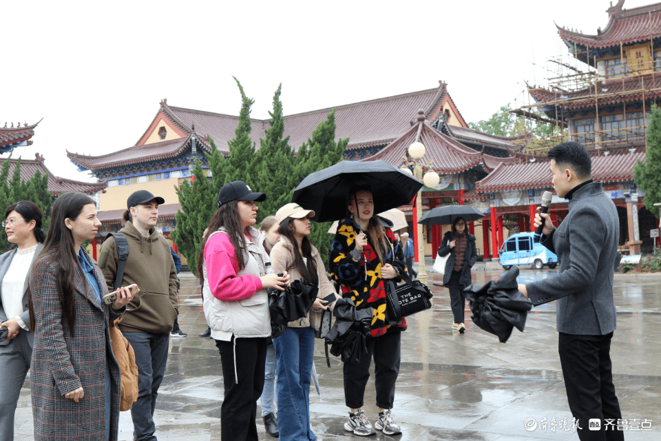外国友人纷纷表示,走进景区,带来的第一感觉就是这里真的很大,建筑也非常有特色,采用的都是仿古造型。钟声与风声交叠,花香与佛香汇聚,自然与人文齐合。