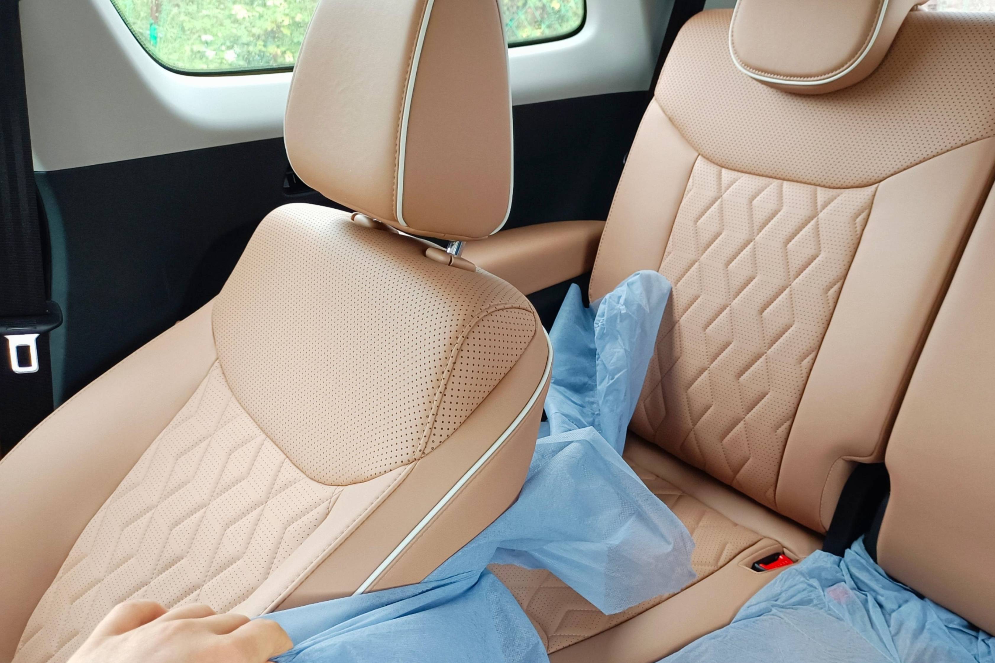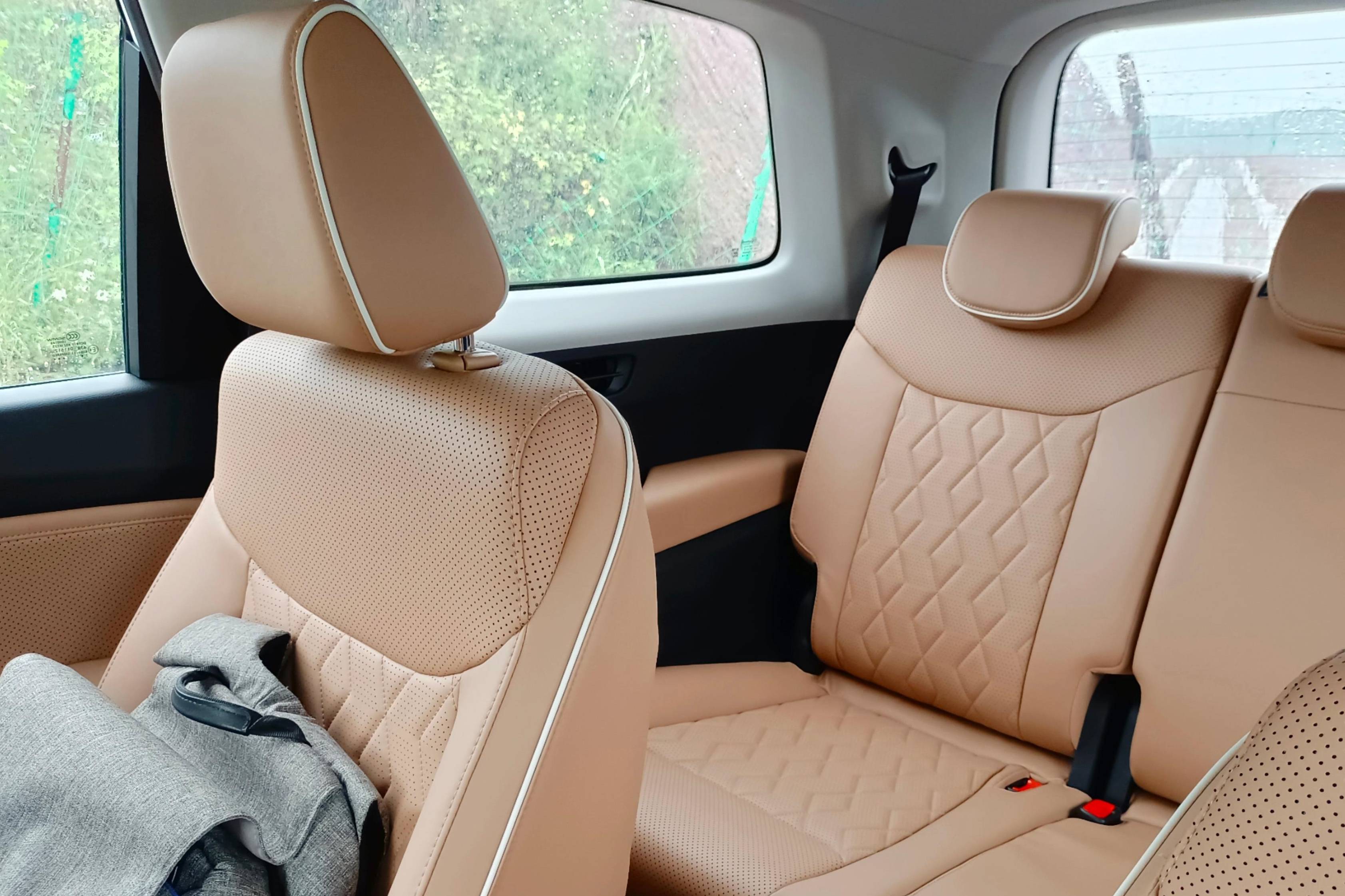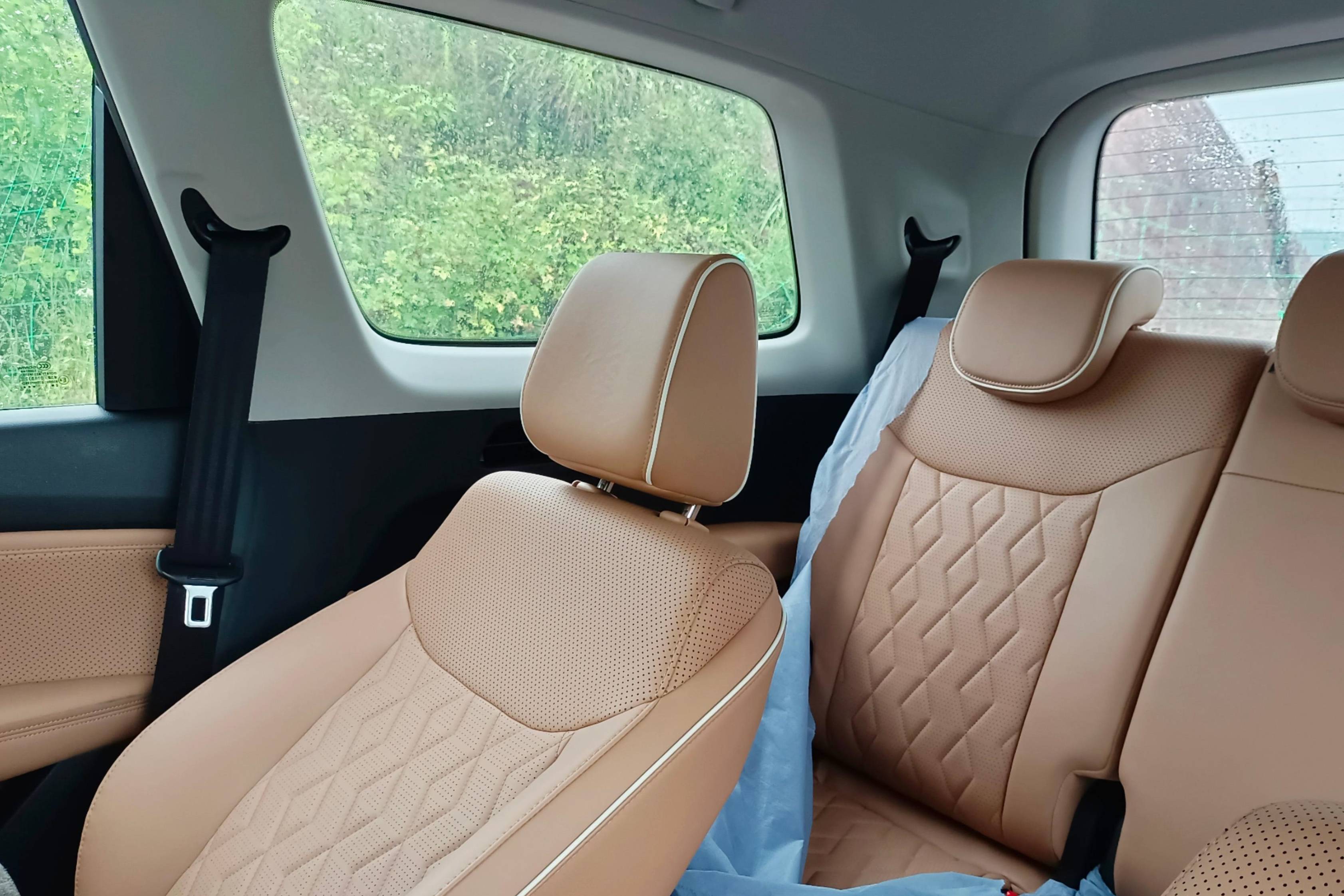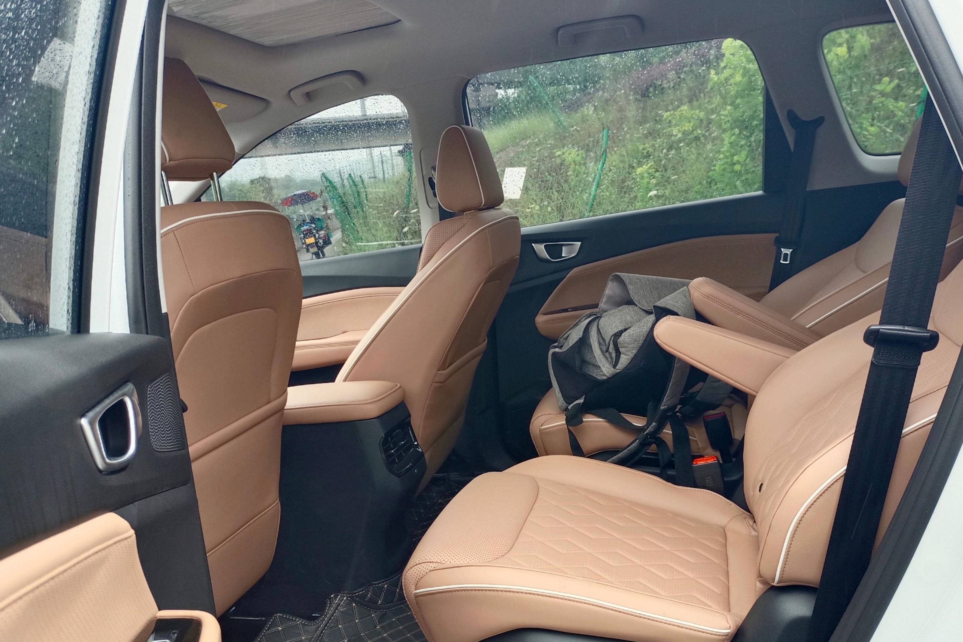 今天给大家看看佳辰第二排,后排座椅,还有才提车不久的时候,第三排座椅我都没来得及撕掉保护膜,自己动手亲自去除掉保护膜。第二排座椅也是可以调节靠背的,也可以放倒躺一下。也可以把位置多往后面拉开一点,这样第二排座椅空间就更大了。不过这肯定不适合满载的时候。第三排需要乘坐人员的时候,第二排也得合理安排好距离才行。毕竟这个是7坐车型。才10万块这个空间我还是比较满意的