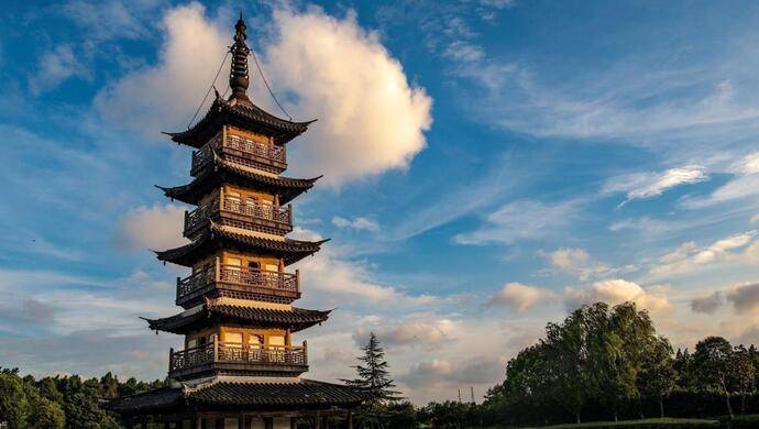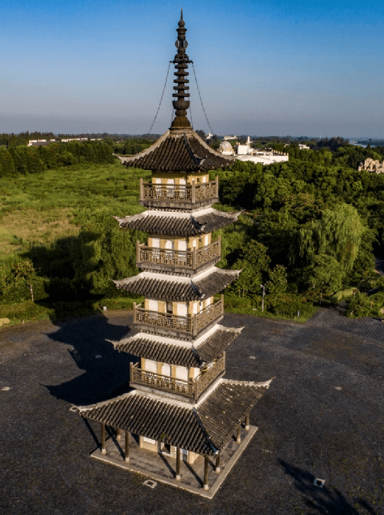 江南水乡青浦的历史文化遗产资源丰富,全区共有281处各级不可移动文物,泖塔便是其中之一。唐乾符年间(874-879年),僧如海在泖河中筑台建塔,后增殿阁,名“澄照禅院”。塔为五层方形,是砖木结构楼阁式佛塔,塔基边长8.63米,塔身主体高度20.6米,总高28.2米。