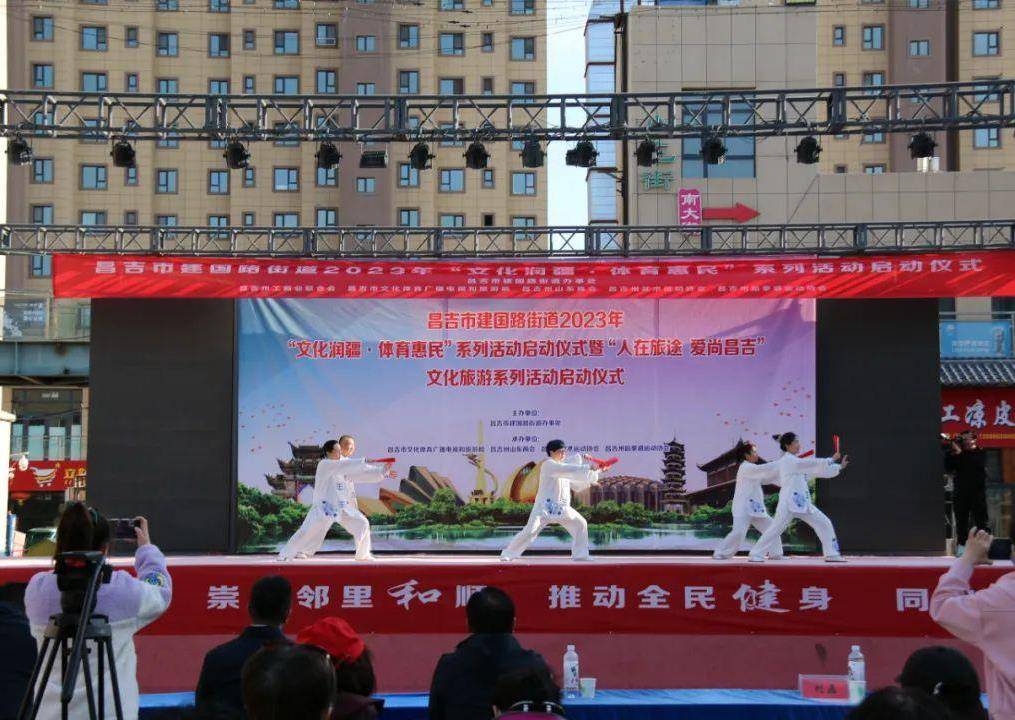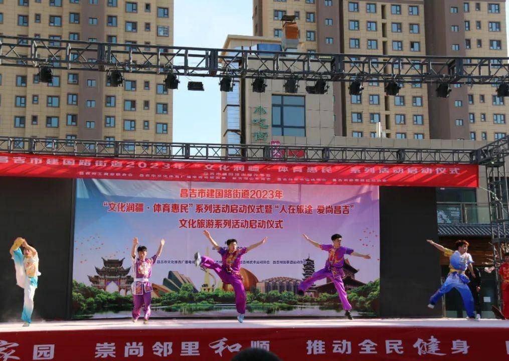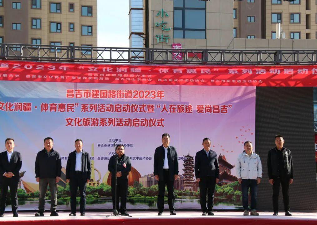 为贯彻落实第三次中央新疆工作座谈会上,关于“文化润疆”的治疆方略,为丰富昌吉市各街道、社区居民的文化体育生活,推进体育健身进社区的建设,营造健康、和谐、有爱的社区氛围。4月20日建国路街道办事处在乐活小镇举办2023年“文化润疆·体育惠民”系列活动启动仪式暨“人在旅途 爱尚昌吉“文化旅游系列活动启动仪式,是为进一步落实昌吉市委、政府,对文化体育工作的安排部署,积极打造“大美昌吉·竞技之城”城市名片,积极推动昌吉“体育+旅游+文化”深度融合发展。