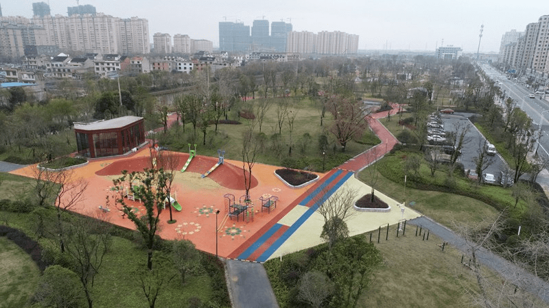 泰兴公园占地230亩,其中水面90亩,公园改造工程在保持原有功能布局的基础上,对水上活动区、人文纪念区、花卉景观区、休闲娱乐区进行了整合升级,精心打造了情侣园、月洞门、梅花岭等10多个主题景观。在公园临近如泰运河一侧,新增了455米滨河慢行步道,与“双水润城”慢行步道实现了连通,公园由过去的封闭式变成了开放式。此外,景观照明、园路、绿化等设施也进行全面提档升级,全园营造生态景观空间,为市民提供自然生态优美、人文气息浓厚的游园体验。