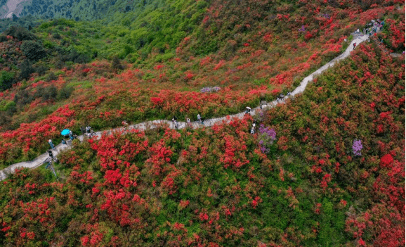 这里的春风温暖,景色怡人,不仅被赋予国内最美森林氧吧和避暑胜地的称号,同时也是一个休闲养生的好地方。这几年来,丹寨实施“打造旅游精品项目加快'旅游产业”的布局,全面发展景区。而杜鹃花节也已经陆续开展了许多届,丹寨的杜鹃花海闻名于国内外,引来了四海宾朋,并且也用实际行动证明了,生态就是经济。保护生态,就能够得到回馈这句话的正确性。眼下也正是这里杜鹃花盛放的时节,丹寨杜鹃花节之中,大片火红的杜鹃花开得格外惹眼,把丹寨也映衬得格外鲜艳动人。丹寨这里以凉快的气候成为国内闻名的避暑之处,森林的覆盖程度高达95%,也带来了非常清新宜人的空气,证明着丹寨是当之无愧的清肺胜地。在近期更是以花作为媒介,吸引了大批游人来到这里欣赏美景。