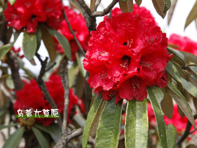 这种大红色的杜鹃,在乌蒙大草原上并不多,它的高度比人高,比那些粉色矮杜鹃要高的多。