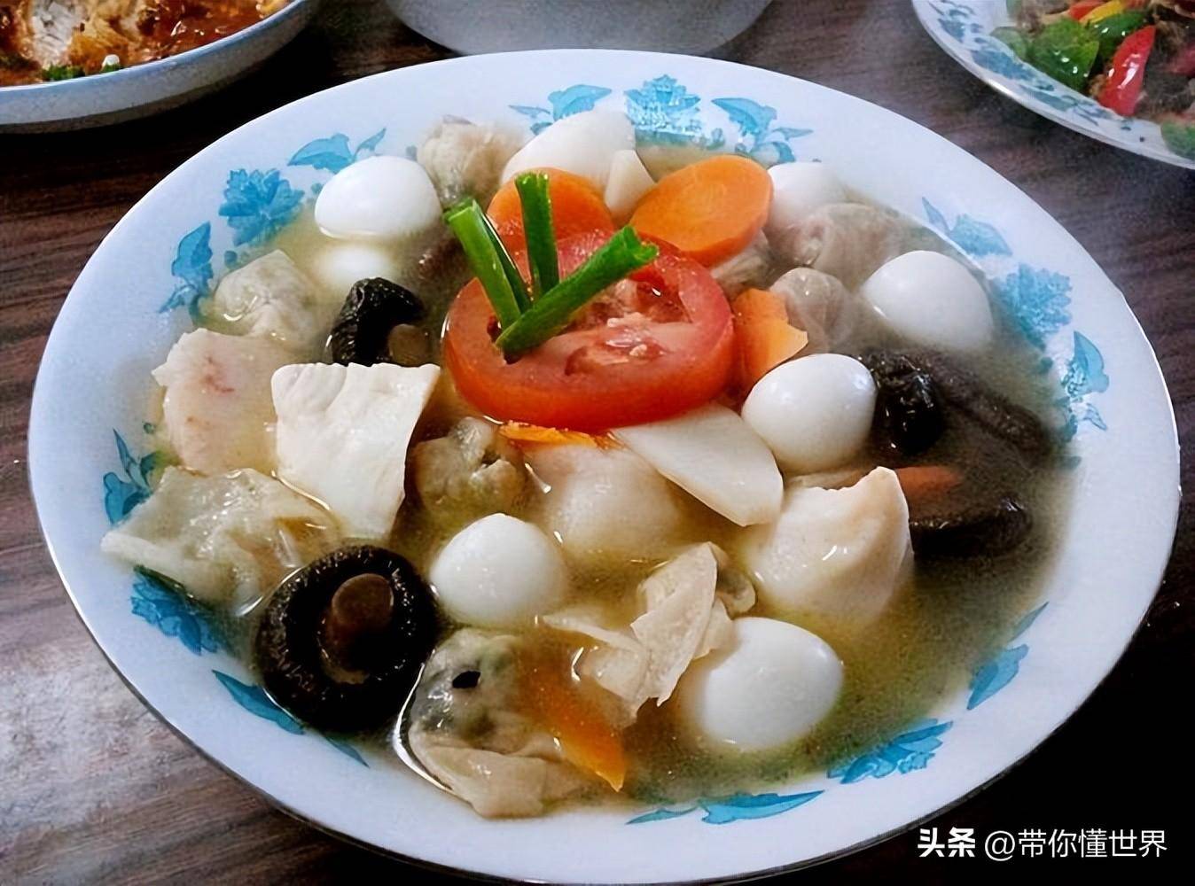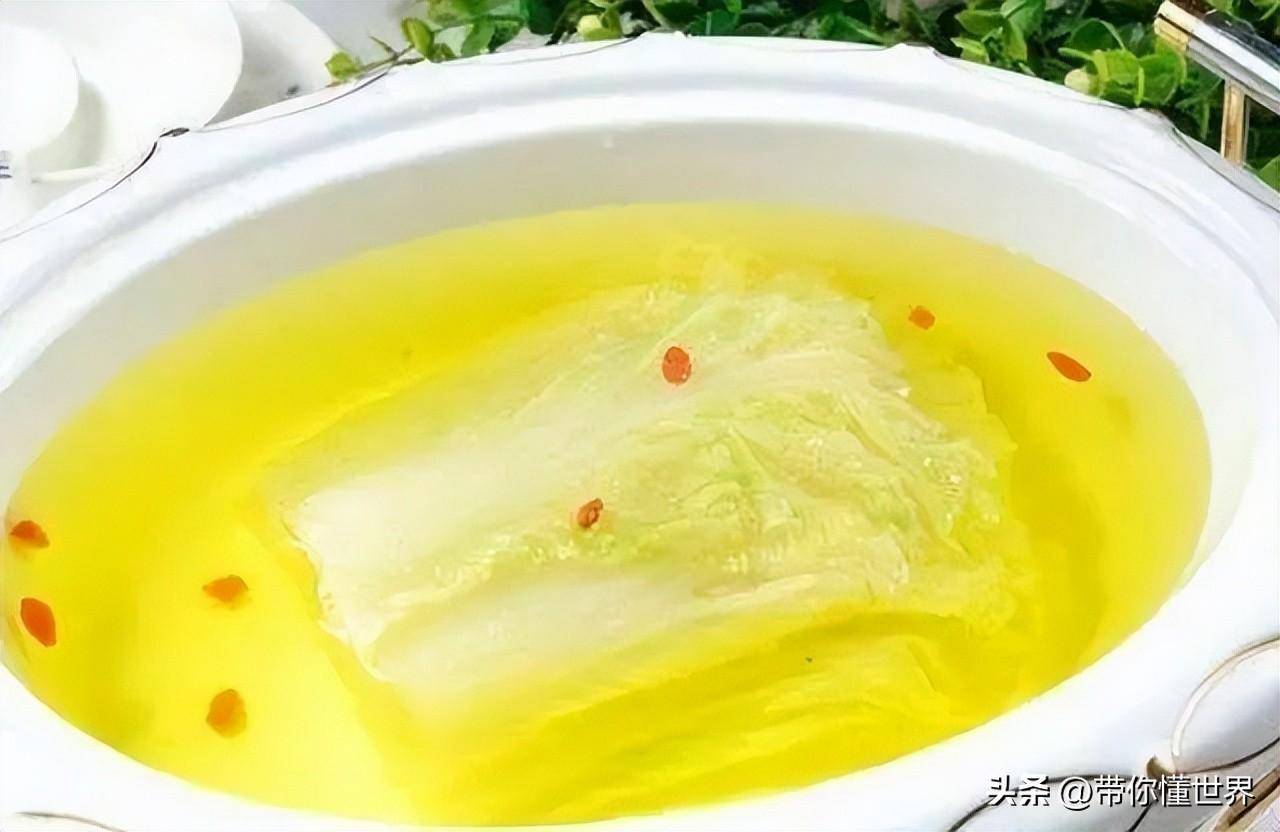 开水白菜以白菜为主料,加高汤调味的名菜。别看外观看着很寡淡,但味道真不错。白菜音同“百财”,也是年夜饭的一道吉祥菜。