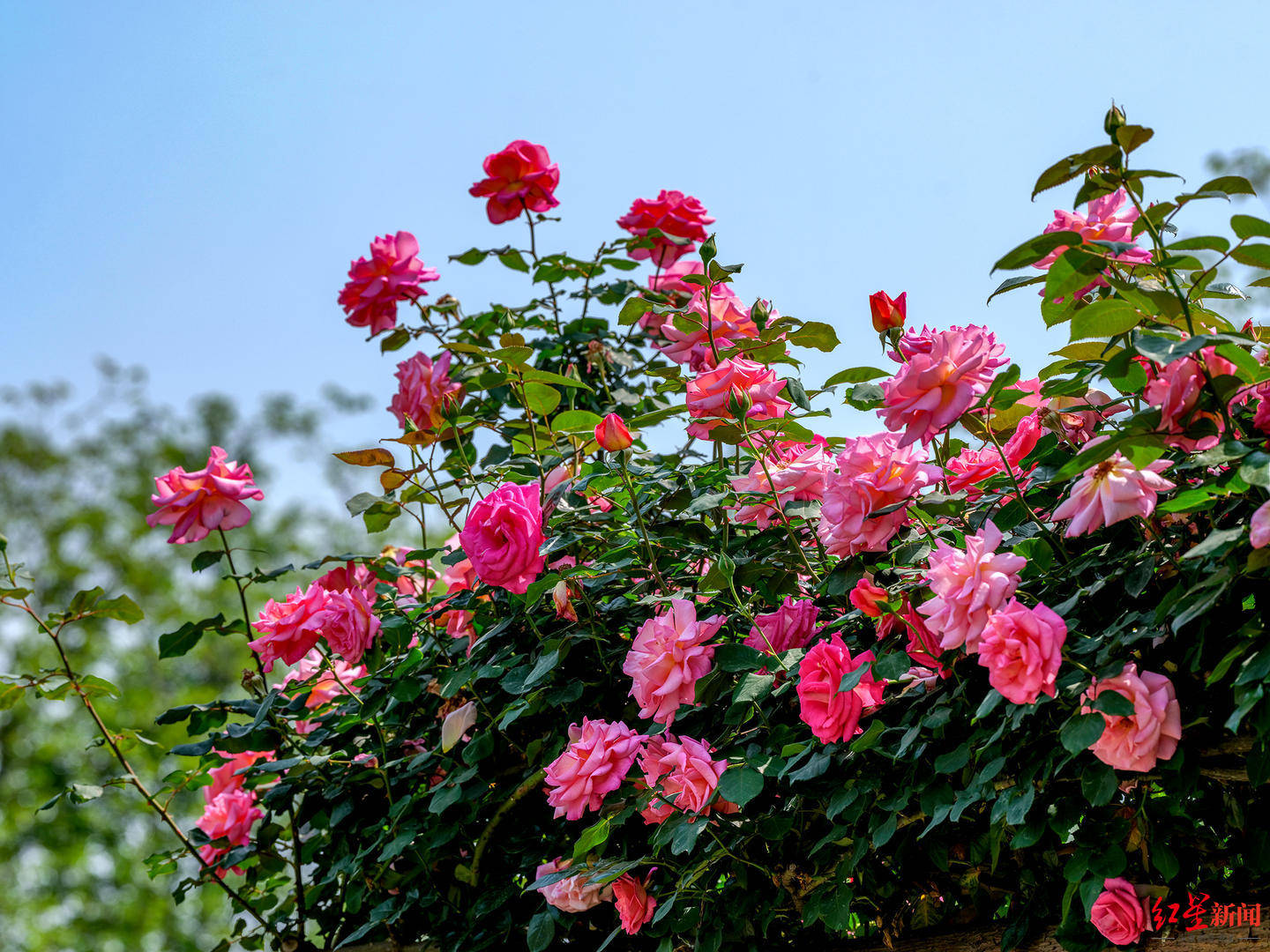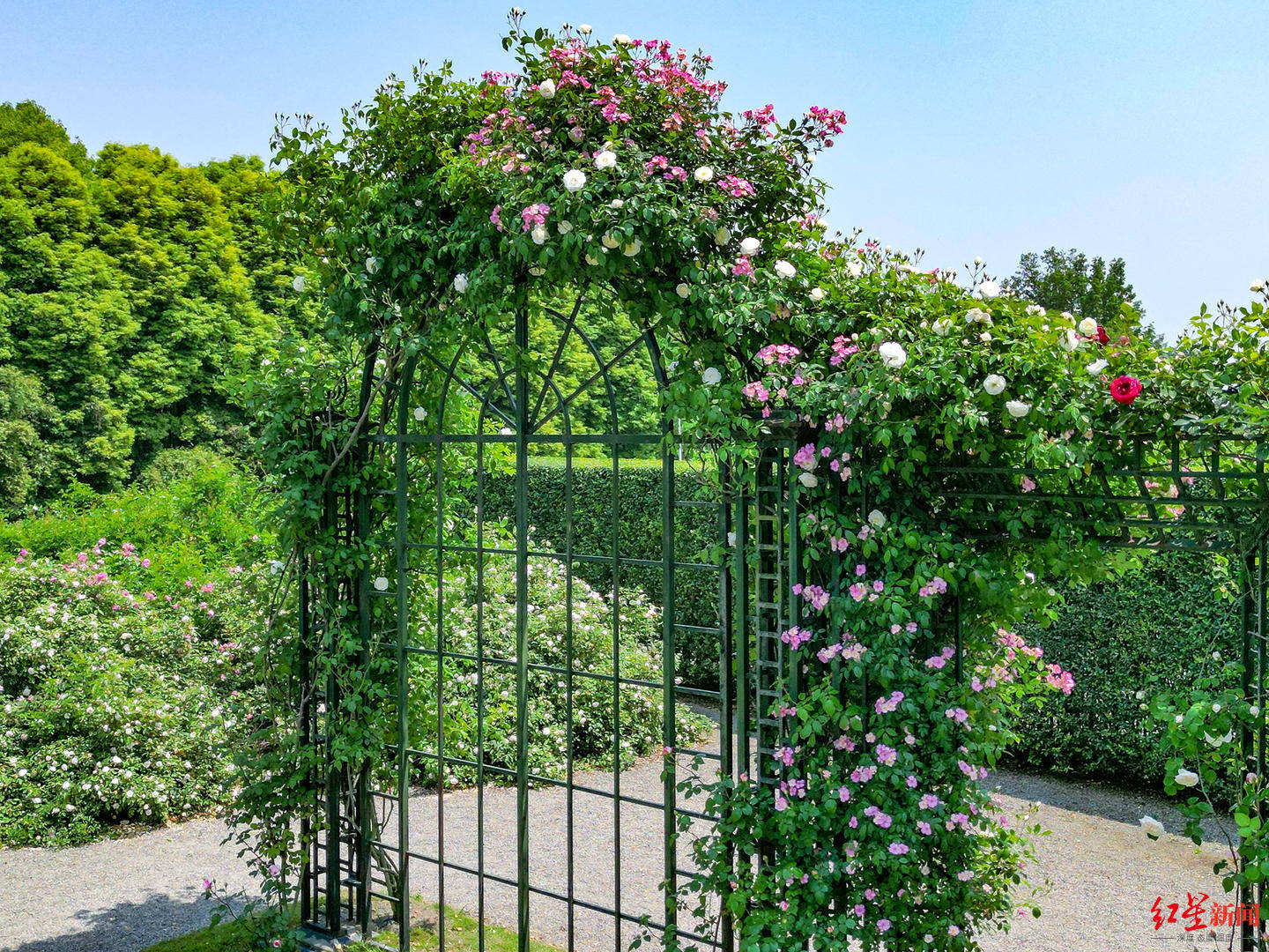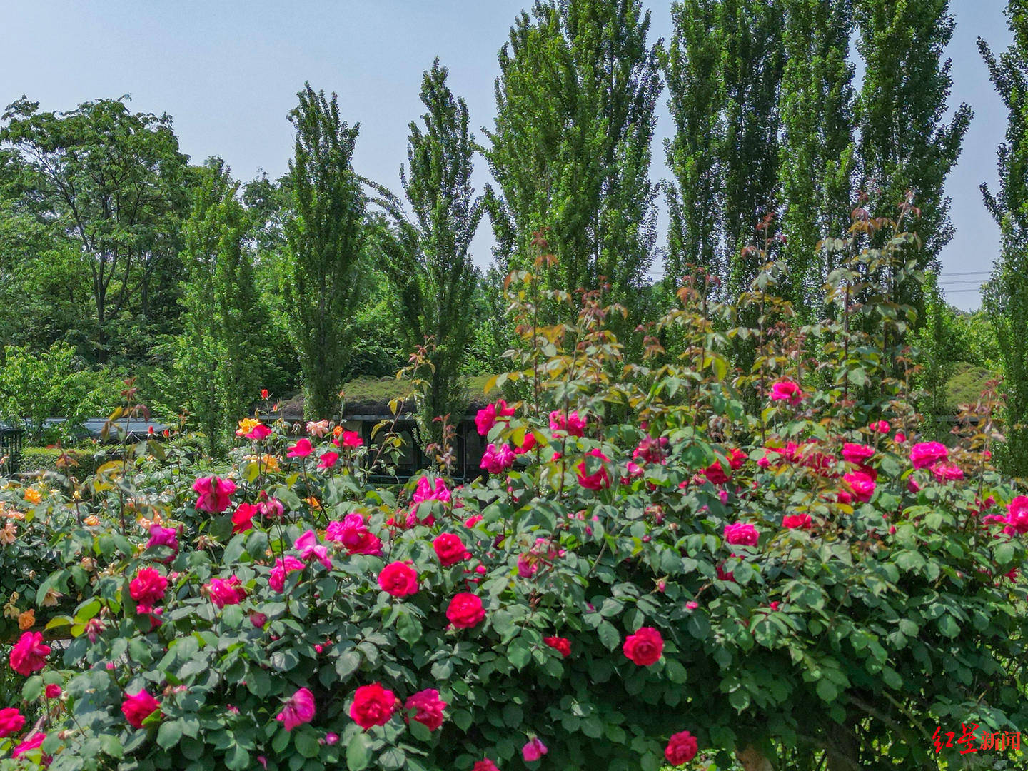 五月玫瑰庄园是由中日法三国合作团队,历经10余年建成的正宗玫瑰庭苑,截至目前不同品种的玫瑰已经绽放成一片绚烂花海。市民们嗅着鼻端馥郁花香,以尽态极妍的繁花为背景,欣赏着各具特色的玫瑰摄影作品展示、玫瑰主题手作、玫瑰诗歌绘画等等。据介绍,五月玫瑰庄园收集、展示超过1500多种玫瑰品种,让游客可以尽情游览于玫瑰园中去感受独特的玫瑰文化和庭苑的芬芳。