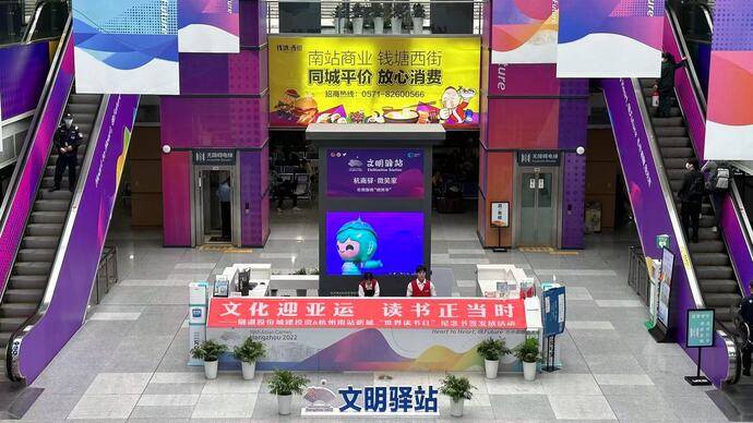 今年也是杭州的“亚运之年”,杭州南站以文化为主导打造亚运萧山城。杭州南站管委会联合隧道股份城建投资杭州区域运营中心,通过长卷书画、非遗橱窗、公共阅览区、书报图书角、精美书签等文化元素,传递着南站的蝶变力量与文化内核,致力打造出一座有历史有故事有温度有情怀的魅力新站。