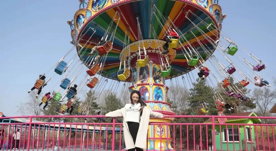 音乐响起,旋转摇摆伞开始慢慢转动,坐在吊椅上的游客乘风而起,体验着自由飞翔的奇妙感受。如果你恰好路过,可以靠近栏杆,用旋转摇摆伞作为背景,拍出你想要的照片。