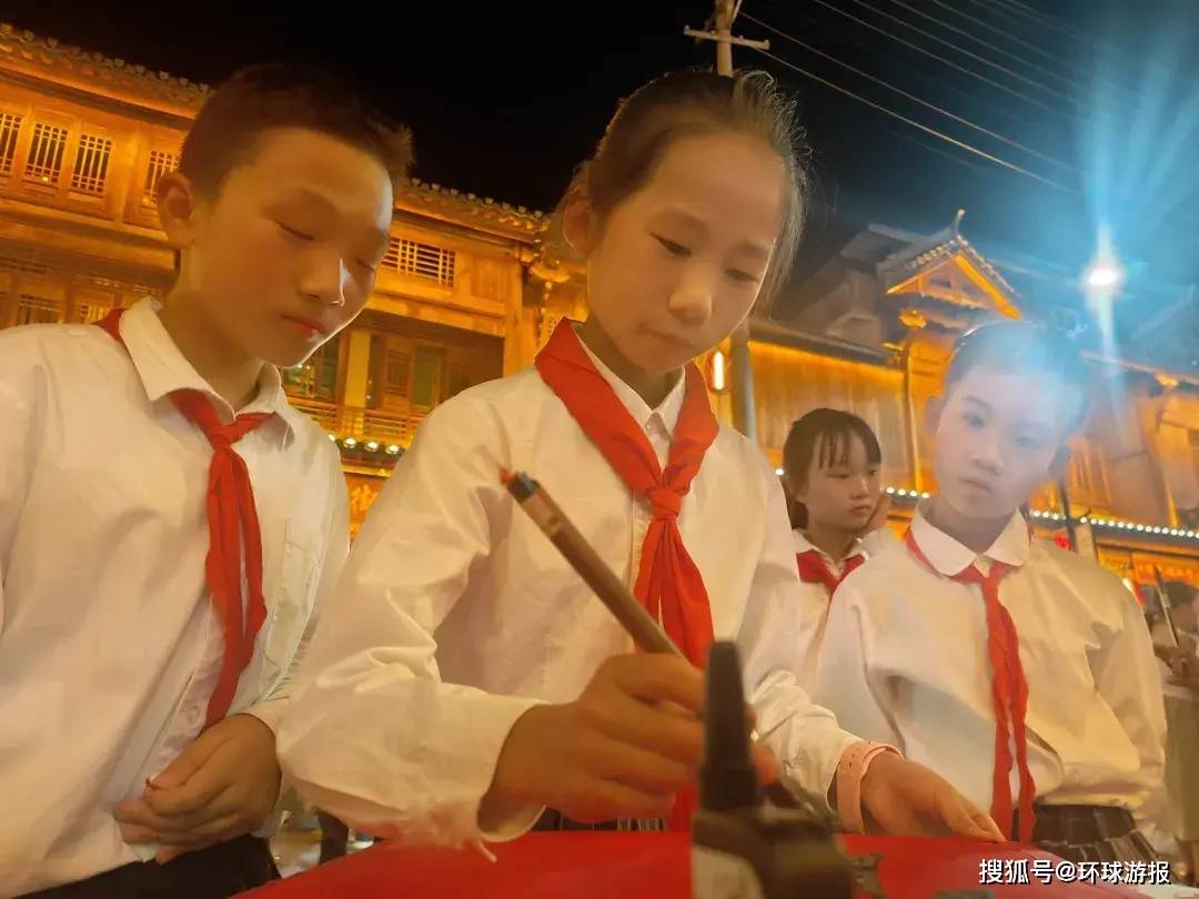 古典音乐悠远古朴,与古城南街相得益彰。身着汉服的孩子们,一笔一划,行云流水,把寓意讲道德,追求美好,向未来的“合德、合美、合未来”写进每一个人心中,迎来围观群众阵阵掌声。