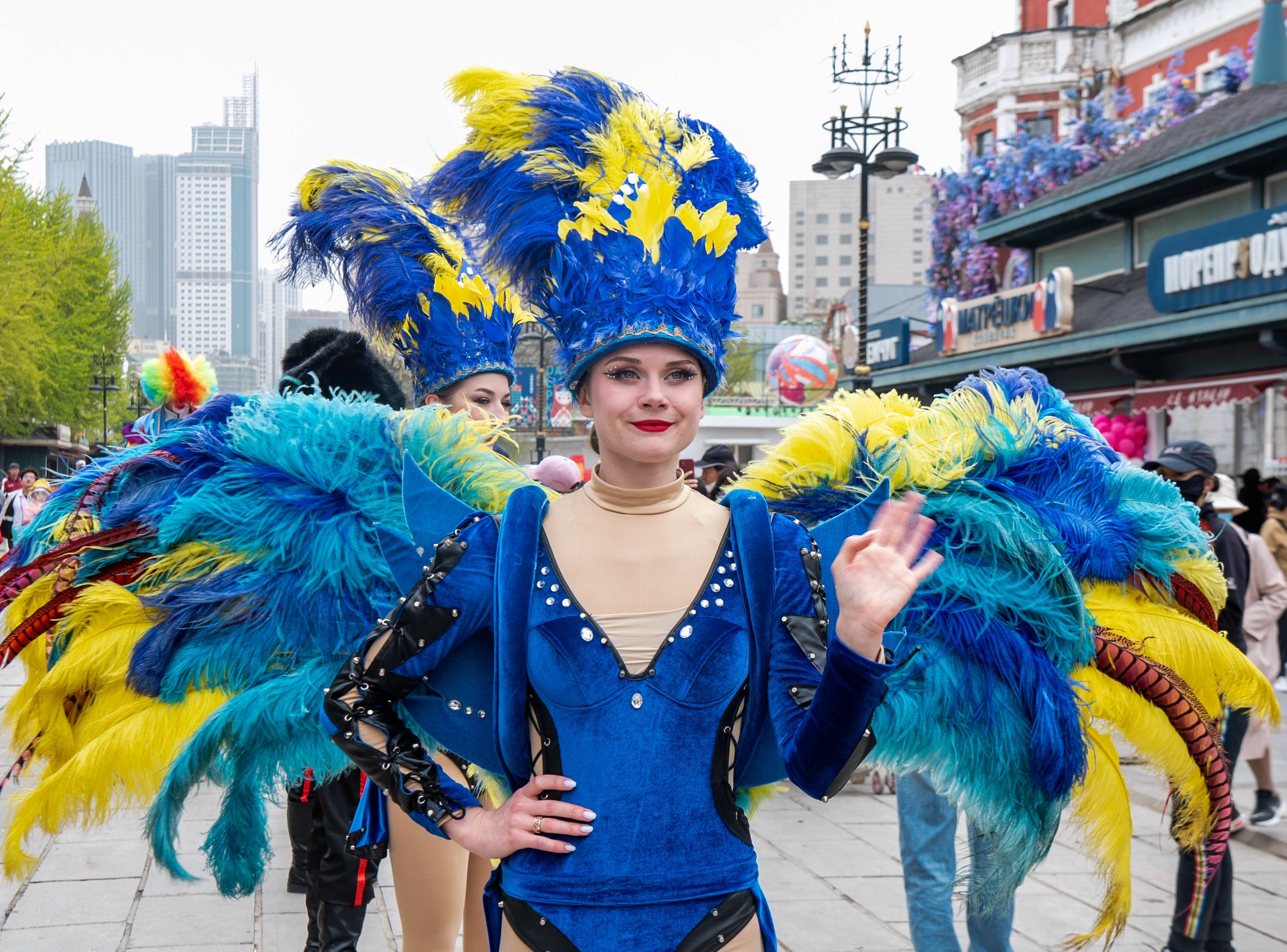 游览的过程中,我们幸运地欣赏了一场精彩的街头盛装巡游,漂亮的小姐姐和小哥哥吸引游客的目光,调皮可爱的小丑也是人群中“最靓的仔”之一。