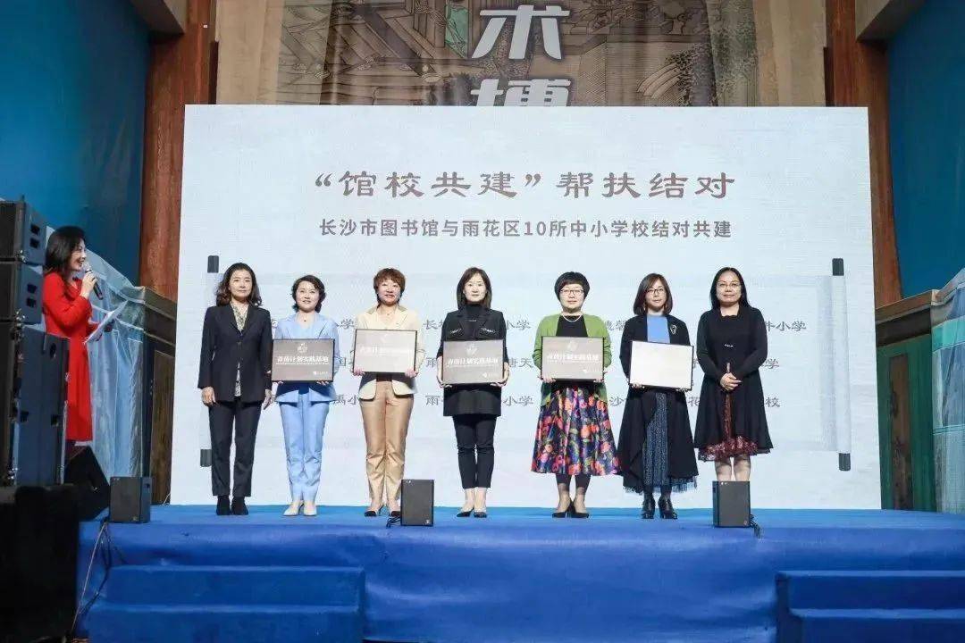 活动现场,大观仓艺术博物馆馆长郭家誉介绍珍藏书品《齐家——明清以来人物画中的家族生活与信仰》和艺术殿堂大观仓艺术博物馆,向线上线下观众发出了一起读书、探馆的热情邀请;长沙金牌导游许丁声情并茂带领观众徜徉“圭塘河岸沐书香”和“绿心之芯探自然”两条雨花书香文旅线路。在现场展墙,扫描二维码还能获得手绘游览地图,方便游客打卡游览;长沙市文旅广电局和长沙市图书馆领导共同为雨花区10所结对共建的中小学校代表集中授牌,通过馆校共建,图书馆将为学生赠送读者证、流动图书车开进校园,鼓励孩子们走进图书馆,在书香中大观世界、悦读生活。