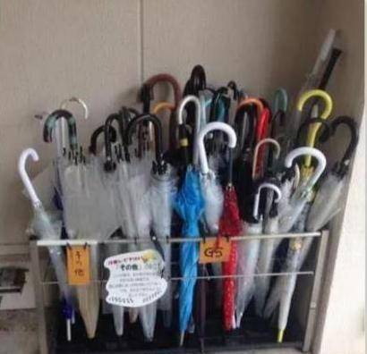 另外就是日本的很多商场或者超市,都是有专门设置一个伞架的,会在上面放置一些公用的雨伞。如果出门没有带雨伞,碰到下雨天气的时候,就可以免费拿伞架上的雨伞使用,用完还回去就行了,伞架上的雨伞也都是统一的透明雨伞。