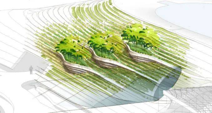 在建筑上,景观形成了博物馆在大厅、礼堂、咖啡馆、餐厅、零售店、停车场和建筑服务上的“表皮”。错觉是一座雕塑轻轻地躺在风景上。采用智能技术灌溉根区,收集和回收多余的水,提供郁郁葱葱的“山丘”——与城市环境形成鲜明对比。台阶和人行道鼓励探索,让游客可以从草木和金合欢的原生景观中欣赏到独特的城市景观,在“世界上最美丽的博物馆”之一的地方创造一段难忘的旅程。