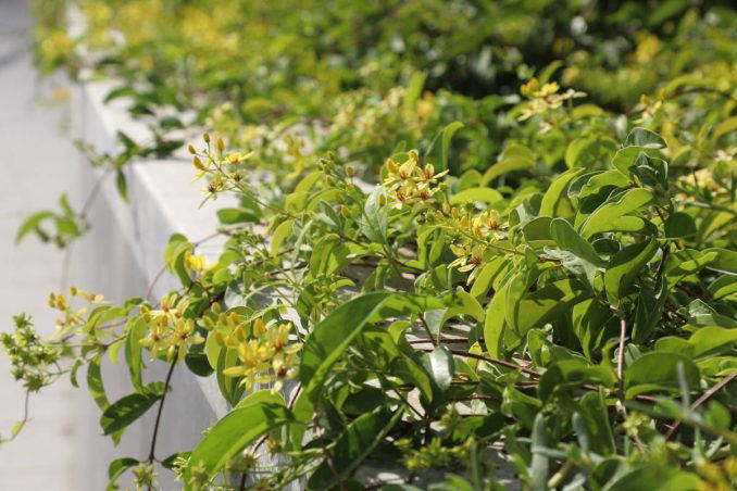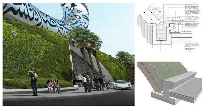 通过保持土壤层薄并用轻质发泡聚苯乙烯 (EPS) 土工泡沫填充隐蔽结构的口袋,最大限度地减少了建筑物的结构载荷。此外,椰糠(生物产品)和轻质珍珠岩提高了土壤的持水能力。