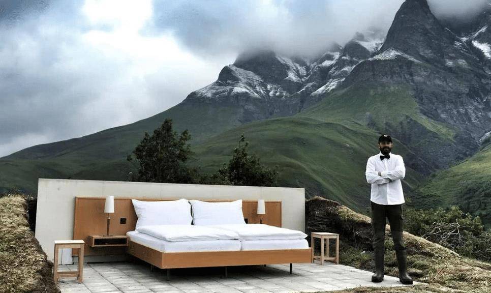 The Null Stern Hotel是瑞士的一座极简主义酒店,它绝对是最亲近自然的一座酒店了。它坐落与阿尔卑斯山中,如果光看外表,可能没有人会觉得它是一座酒店,因为整座酒店的房间就只有一面墙壁,除了床与床头柜之外,基本没有其它设施了。