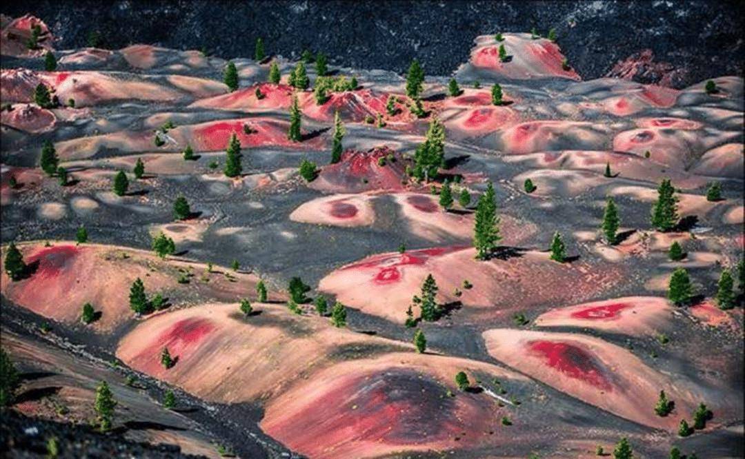 在很多电影之中,外星球的地面都是彩色的,尤其是一些幻想电影,地面五光十色感觉非常美丽。在美国的拉森火山公园之中,就有很多这样色彩鲜明的沙丘,它们就像是被随意涂鸦的一样,又与人们想象中的外星球很相似,让游客不由得感叹:真是神奇的造物。