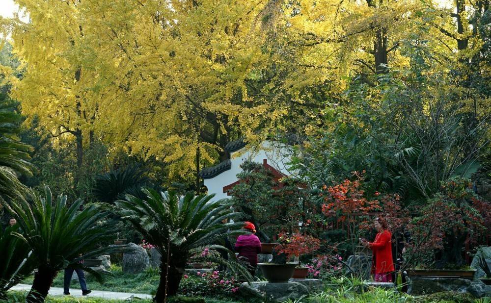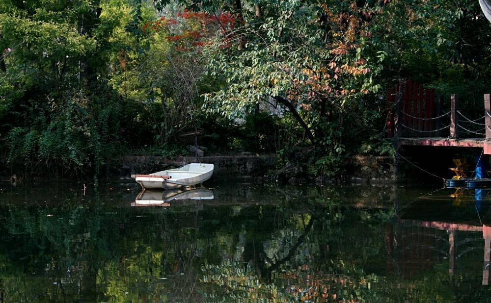河边的柳树发芽意味着春天的到来,午后的蝉鸣意味着夏天的到来。来吧,冬天的公园是给那些静静欣赏盆栽的人的。平时,在草堂、浣花溪、青羊宫人声鼎沸、游人络绎不绝的时候,百花潭就像一个安静的俊男。它安静而精致,很少有人打扰它。