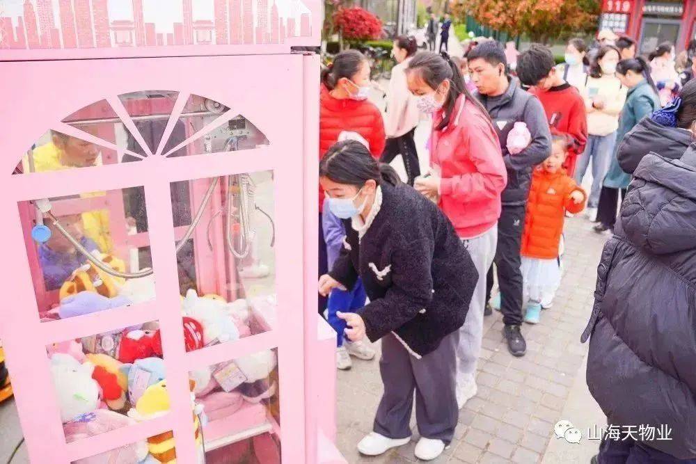 活动现场不仅有各式各样的趣味小游戏,还有大型人偶穿梭在各个角落,吸引了大家的目光,大家纷纷合照留念。趣味小游戏吸引了一群小朋友前来打卡,现场氛围火热,充满欢声笑语。