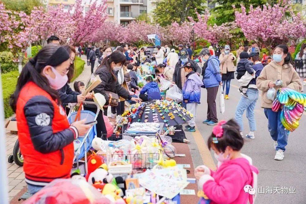 樱花市集现场气氛火热,为园区业主提供了一个闲置物品、花卉、装饰用品等售卖的平台,业主们赏花逛集,感受浓浓春意。