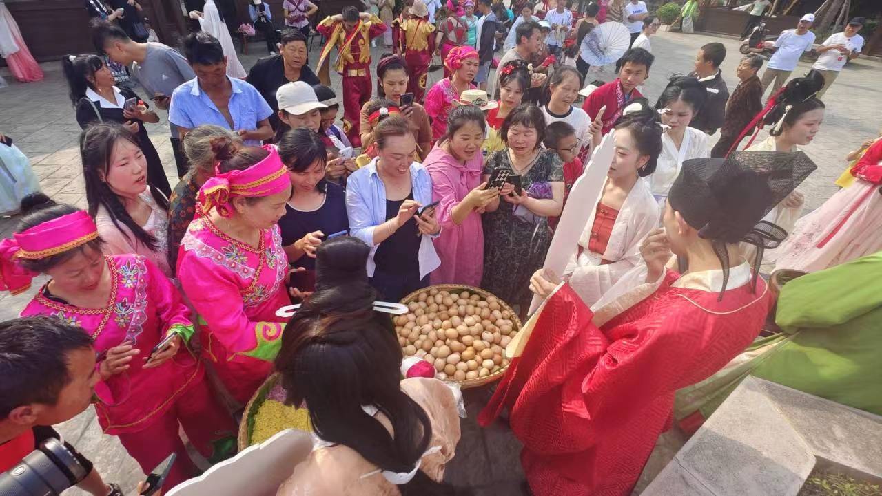 鲁屯古镇有着丰富的明代“边屯文化”,活动现场随着非遗节目起源于明代军屯生活的围鼓的响起,拉开了演绎上巳节活动的帷幕。汉服爱好者们在台上火热地进行着古筝表演、汉服展示、舞蹈表演等活动,尔台下则布置了一系列的“上巳节”相关文化演绎。