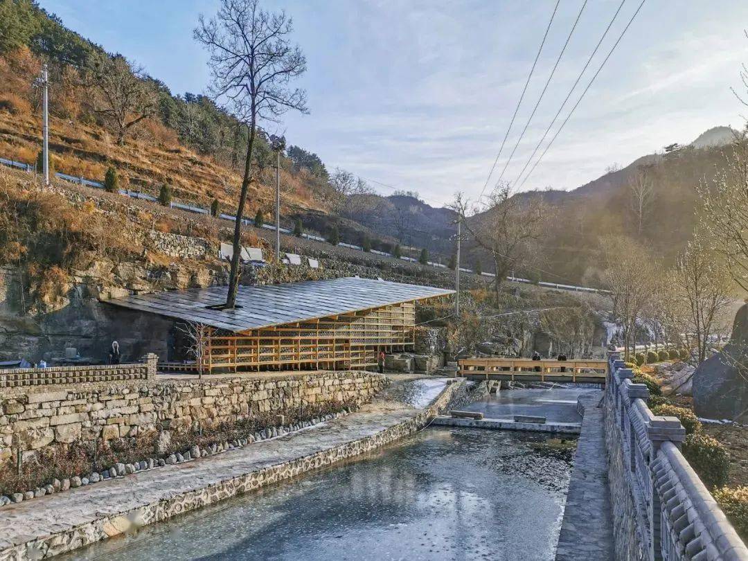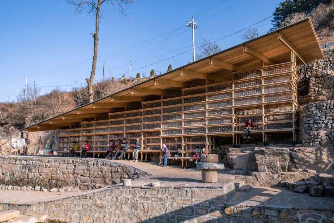 书屋紧临村东的浙水河,倚靠天然石壁,只建了两个面:一面是倾斜的大屋顶;一面是作为围护结构的承重墙。建筑灵感产生于设计师罗宇杰的实地调研。当时,浙水村作为旅游公路的驿站村,正在打造配套设施。接到委托后,罗宇杰走访了许多村落。他发现,在太行山区的民居建筑中,石头是主要材料。“当地许多村民,累了就直接靠在山石上休息。这种人与自然和谐共生的情景给了我启发。”因此,他就地取材,为村民设计了这个实用性与艺术性兼具的公共文化空间。