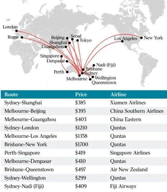 在海外旅行的高票价中,有一条航线非常便宜。为了填补澳中航班空缺,momondo.com.au的单程票价低至246澳元,Webjet的单程票价低于400澳元。