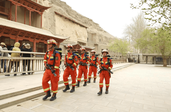 消防指战员在莫高窟巡护执勤。窦惠惠摄