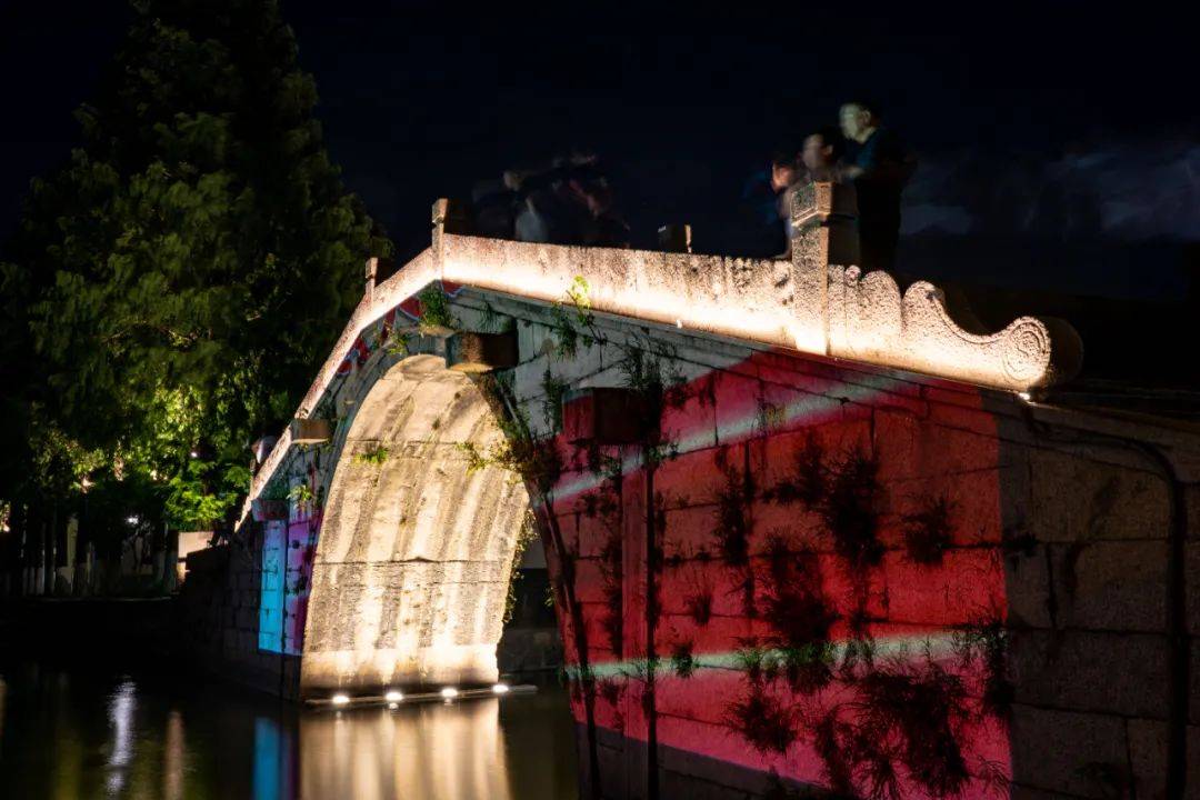 其实,早在2021年,金泽古镇就针对景区内7座古桥实施了夜间景观照明工程,江南水乡的夜幕,加之灯光映衬下古桥,越加凸显优雅美感。