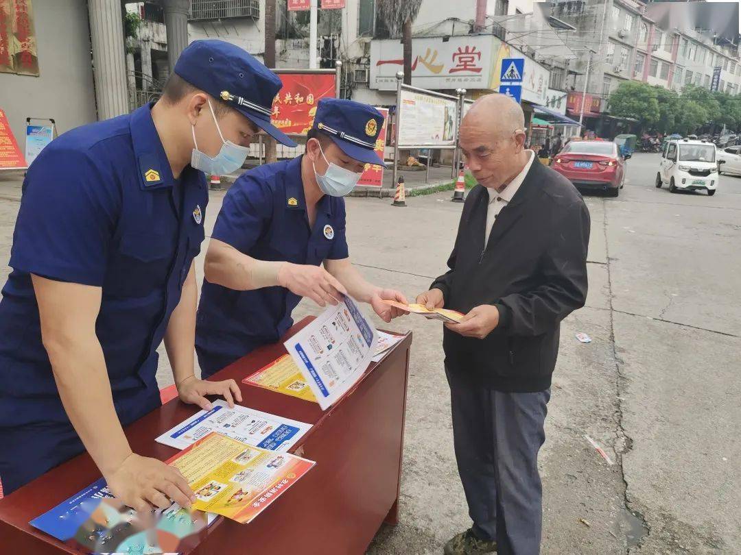 在辖区景点、车站、公园,建设路消防救援站陈昱潍与队员搭建了防火宣传点,向过往群众发放防火常识传单、防火科普知识手册等资料。