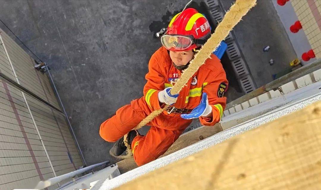 “三月三”假期未出警的休息时间,建设路消防救援站的训练标兵汤中进练起了爬绳。