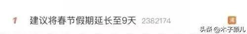 建议将春节假期延长至9天,在微博热搜榜上排名第一了,看来大家都有一样的想法,希望春节假期能稍微长一点,多点时间陪伴家!