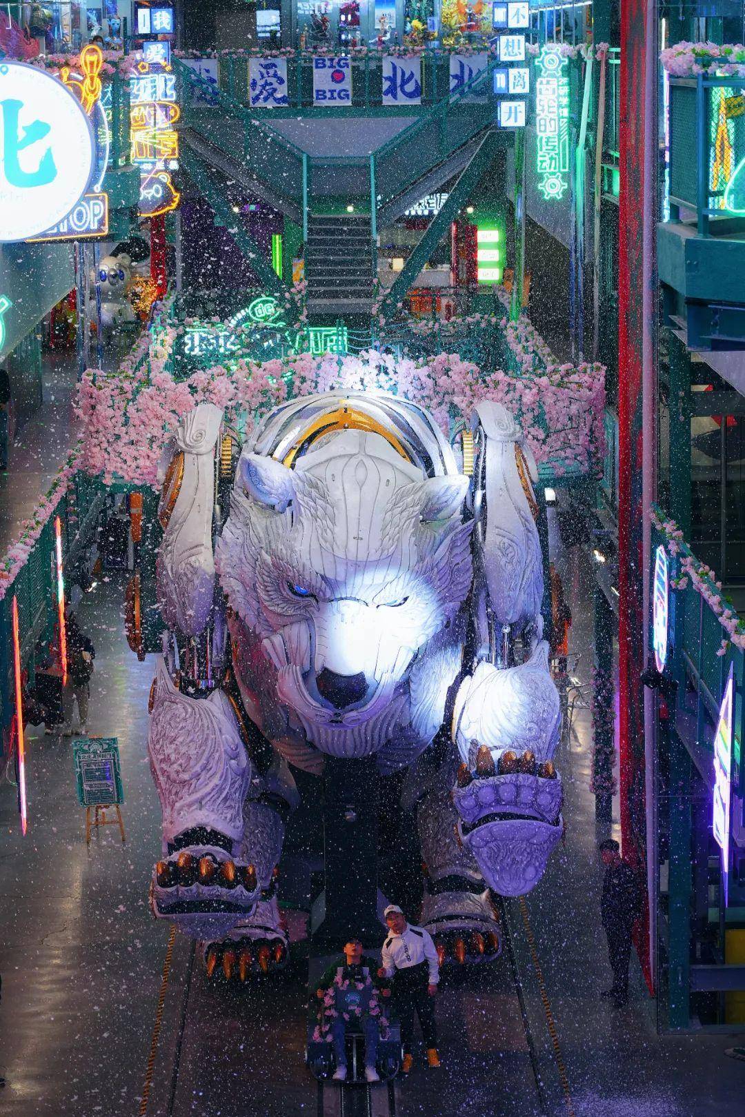 拍摄机械巨熊的最佳位置是在三楼中间,可以看着它缓缓向你走来。