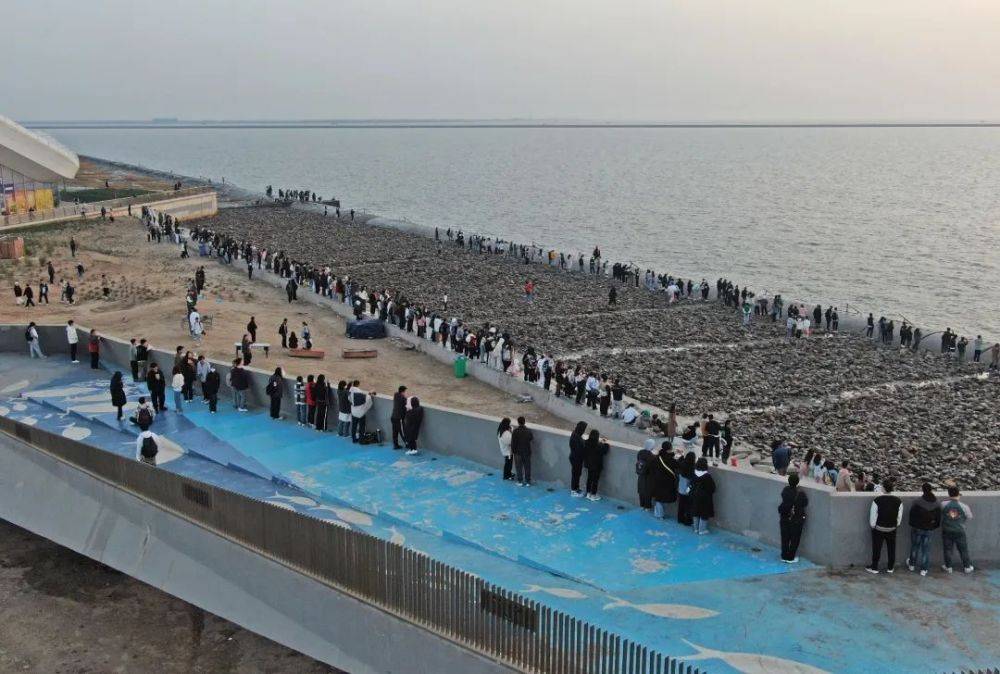 最近社交平台上最“出圈”的话题之一,就是“大学生'特种兵'夜骑赴东疆观海上日出”。来自天津各大高校的同学们从学校出发,最远的一夜骑行近百公里,只为一睹“日出东疆”的壮丽景观,同学们骑行的终点便是位于天津滨海新区的东疆亲海公园。