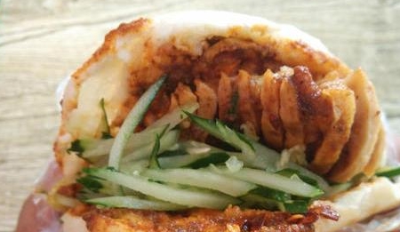 3、豆腐串儿馍。这种豆腐串馍是很多小县城里边都可以吃得到的一种美食,而且特别的受欢迎,都是用热的烧饼加上芝麻酱,然后再加上豆腐串,有的可能会再加一些豆芽或者黄瓜,如果喜欢吃辣的话,也可以放上一些辣椒,味道特别的好,吃过一次就忘不掉,如果到河南去旅游的话,碰见了这种豆腐串馍,可一定要尝尝看哦。
