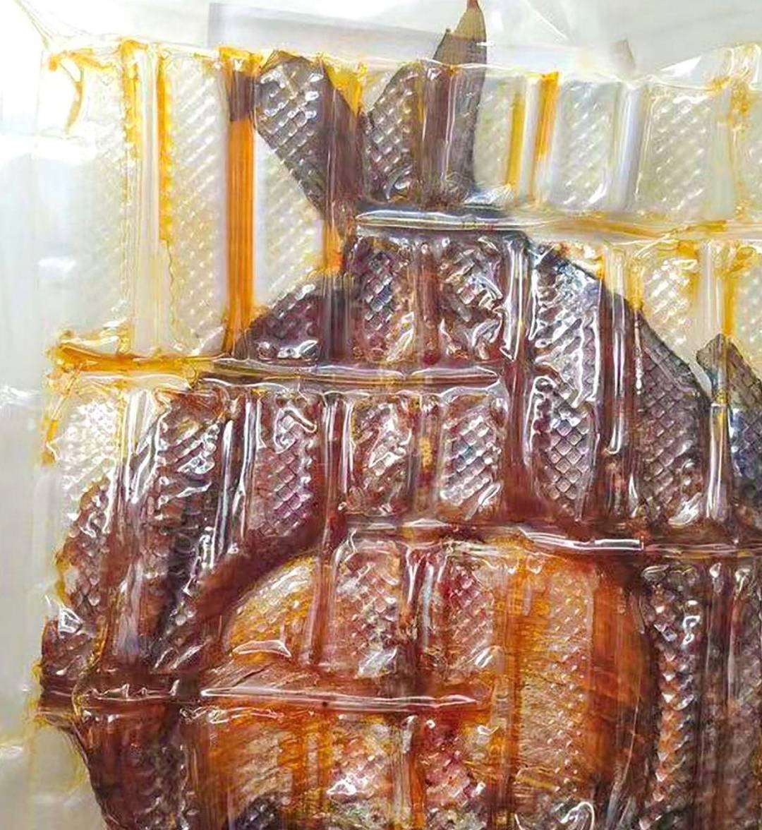 离开湖南的前一晚上和朋友一起逛完步行街,准备回酒店的路上刚好遇到了酱板鸭店,想象着买一些回去带给孩子和爸妈尝尝,这里的老板还让试吃非常的热情,我尝了之后发现味道确实杠杠的。我选了3包微辣的酱板鸭和1包酱板鱼,老板还免费现场真空包装了一下。酱板鸭的味道好有嚼劲,越吃越有味道,好吃得停不下来,味道让你回味无穷。